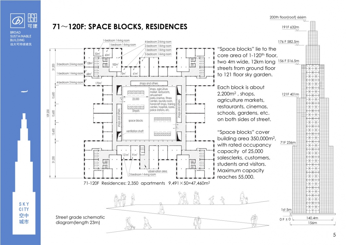 Вчера, 30 ноября 2012, Broad Sustainable Building (BSB) — дочерняя компания китайской корпорации Broad Group, должна была начать работы над фундаментом нового высочайшего здания в мире — небоскрёба Sky City в городе Чанша (столица провинции Хунань на юго-востоке Китая). Его высота должна была составить 838 метров, на 10 метров выше, чем у Бурдж-Халифа в Дубае. Sky City назвали «вертикальным городом», количество этажей в проекте здания — 220 (не считая технических), в небоскрёбе планировалось разместить 31 400 человек. 85% площади здания должно было использоваться в качестве жилых помещений; на оставшейся площади — офисы, школы, больницы, склады, магазины и рестораны.